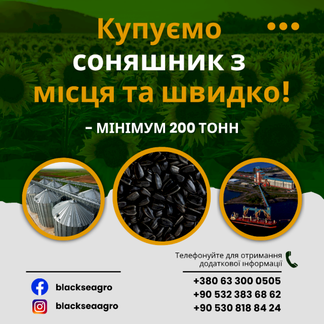 Закупівля на постійній основі: Соняшник/ Соя/ Ріпак Ми закуповуємо велику кількість ріпаку без ГМО, соняшнику та соя ГМО для нашої олійної фабрики в Туреччині. Купуємо з усіх міст України. - Мінімум 200 тонн – Платимо відразу(в Україні) - Ми доставляємо в Bigbag або навалом. Ми завжди постійні покупці.