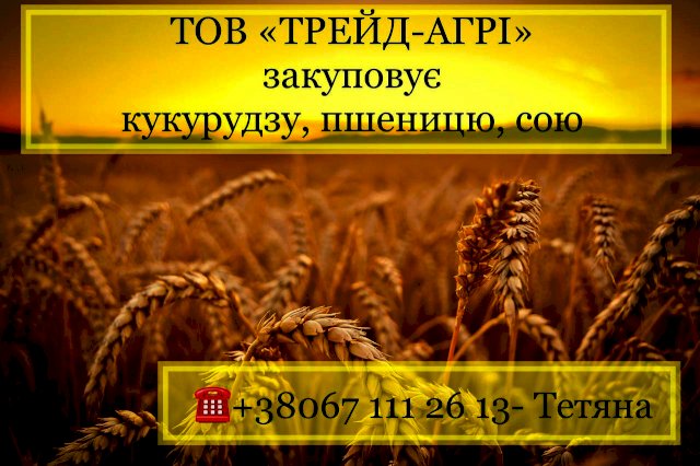 ЗАКУПЛЯЄМО НА ПОСТІЙНІЙ ОСНОВІ КУКУРУДЗУ, ПЩЕНИЦЮ, СОЮ