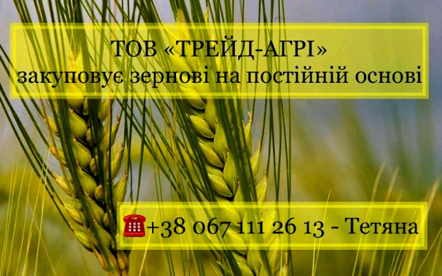 ЗАКУПОВУЄМО РІПАК, ПШЕНИЦЮ, ЯЧМІНЬ ДОБРОГО ТА МИРНОГО ДНЯ!!! ЗАКУПОВУЄМО за найвигіднішими цінами по безготівковому розрахунку з ПДВ: 1.ПШЕНИЦЮ ЧОРНОМОРСЬК: Білок 12.0% -9 400,00 грн. Білок 11.5% - 9 200,00 грн. Білок 10.5% - 8 400,00 грн. Білок 9.0% - 8 300,00 грн. РЕНІ: Білок 12.0% -8 880,00 грн./ 195$ Білок 11.5% - 8 750,00 грн./192$ Білок 10.5% - 8 100,00 грн./178$ 2. ЯЧМІНЬ РЕНІ - 6 950,00/ 153$ 3. РАПС ЧОРНОМОРСЬК - 21 000,00 грн. *Працюємо по всій Україні * Закупка з місця та самовивіз власним автотранспортом * Швидка оплата * Працюємо 24/7 * Діють спеціальні умови ціноутворення на об’єми від 2 000 тон Актуальні ціни та додаткова інформація за номером телефону 067 111 26 13 - менеджер ТЕТЯНА АБО 093 600 88 83 - для повідомлень у месенджерах WhatsApp / Telegram / Viber Ел. пошта: [email protected]
