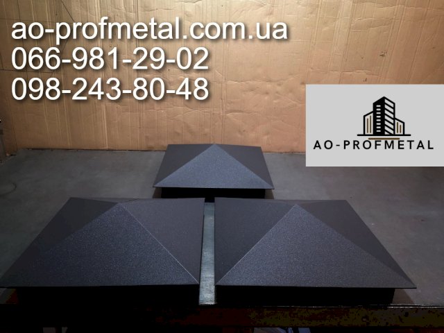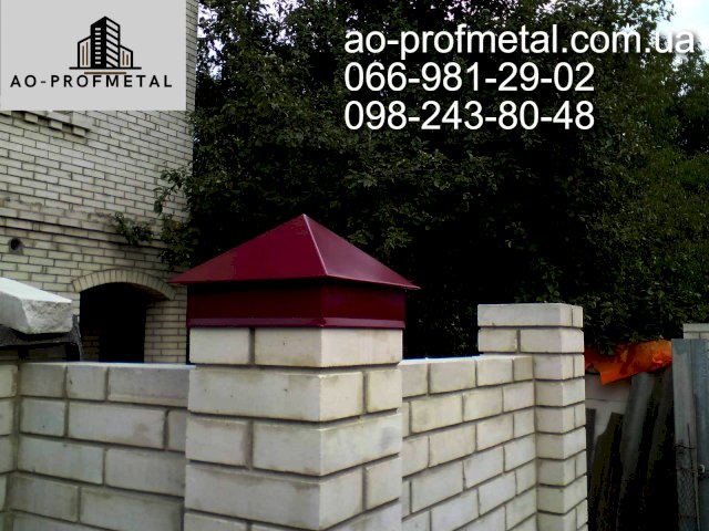 Колпак металический на столб, Колпак металический из профнастила. Колпак на столб забора, Накрывка на столбик забора. От завода производителя. От Вас нужен только размер посадочного места. Огромный выбор по металлу, глянец , мат, под дерево и камень. Доставим по Украине и Киеву, есть самовывоз. Звоните по любому вопросу !!!