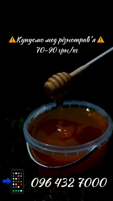 Закуповуємо мед Різнотрав'я врожаю 2025 року оптом без антибіотика від 300 кг. Ціна договірна. Самовивіз власним автотранспортом з гідробортом. Також ми на постійній основі закуповуємо мерву, віск і пилок. Ми працюємо в Дніпропетровській, Херсонській, Миколаївській, Кіровоградській, Одеській, Полтавській, Черкаській, Київській, Харківській, Вінницькій, Сумській та Запорізькій областях. Додаткова інформація за телефонами: (096) 432-70-00 (095) 432-70-00 Підприємство працює цілий рік. А також у продажу є Вощина. Ми знаходимося в Кривому Розі, вул.Степана Тільги 36б Наш сайт http://zolotoy-nektar.com.ua