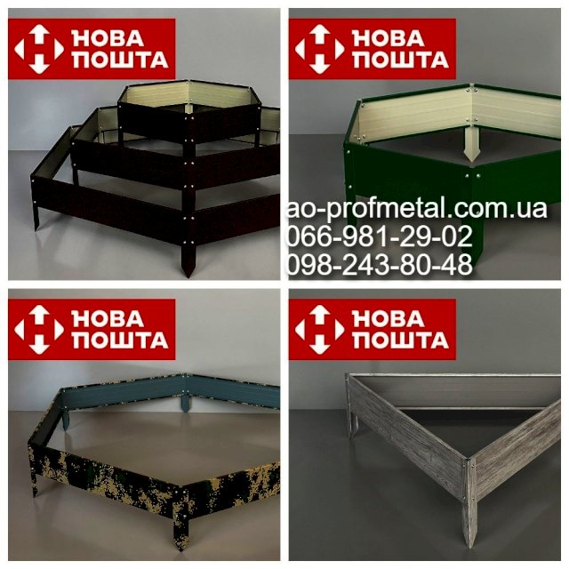 Бортики-бордюры, Грядки-цветники. От завода. Огромная палитра цветов. Делаем любые размеры. Удобная форма оплаты нал, безнал, ФОП, НДС. Звоните по любому вопросу !!!