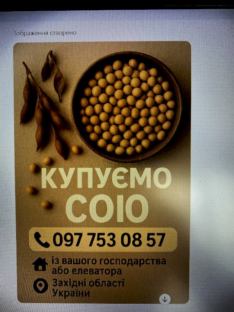 Закуповуємо сою . Від 25 т . Самовивіз. Західні області (Рівне, Волинь, Житомир, Хмельницький, Львів, Тернопіль)