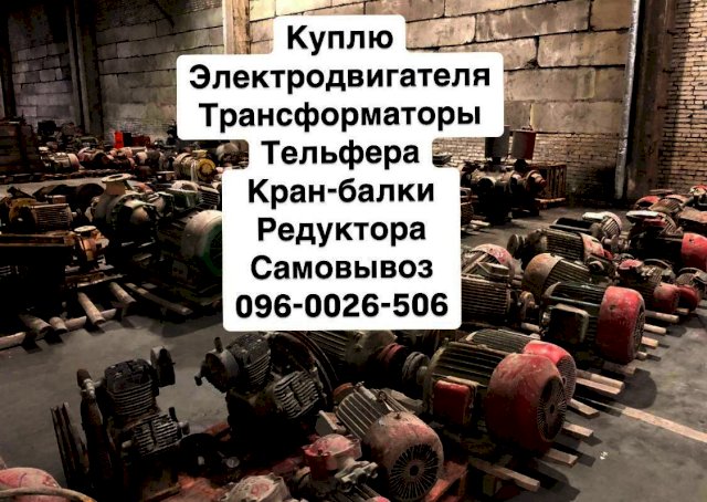 Куплю дорого электродвигатели тельфера редуктора КУПЛЮ ЭЛЕКТРОДВИГАТЕЛИ На постоянной основье А4 4АМ АИР АО АИМ ВР ВАО ДАЗО ВАСО СДН и др (1.1 кВт 1.5 кВт 2.2 кВт 3 кВт 4 кВт 5.5 кВт 7.5 кВт 11 кВт 15 кВт 18.5 кВт 22 кВт 30 кВт 37 кВт 45 кВт 55 кВт 90 кВт 100 кВт 110 кВт 130 кВт 160 кВт 200 кВт 300 кВт 315 кВт 400 кВт 500 кВт 800 кВт 1000 кВт Трансформаторы силовые масляные ТМ ТМЗ ТМГ, от 25квт 63квт 100. квт 160квт 250квт 320квт 560квт 630квт 1000квт 1600квт 1800квт 2500квт 4000квт 6300квт. Трансформаторные подстанции Редукторы 1Ц2У, 1Ц3У, 1Ц2Н, РЦД, Ц2, 2Ц2, 2Ц3, Ц3ВК, ЦДН, ЦТНД, КЦ1, КЦ2, РК, РМ, РЦД, Р-400, В-400, ВК, Мотор-редуктора 3МП-31,5, 3МП-40, 3МП-50, 3МП-80 тельфера болгария Россия 250кг 500кг 1т 2т 3.2т 5т 8т 10т высота 6м 12м 18м 36м. Насосы Подшипники Кабель провод Компрессора Задвижки Холодильные установки Метизы спиральный Классификаторы 096-00-26-506 Андрей Самовывоз демонтаж По всей Украине