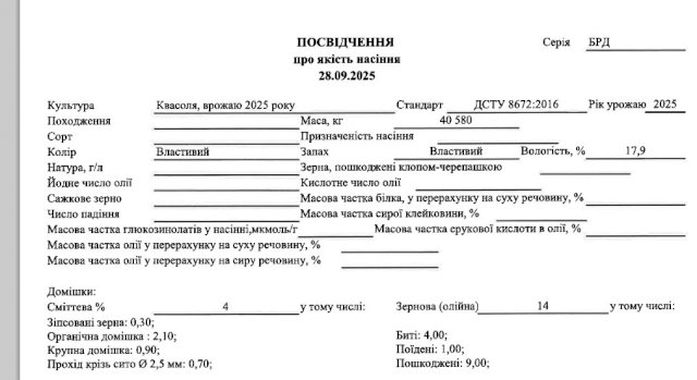 Підприємство-сільгоспвиробник реалізує квасолю білу, врожай 2025 року. Обсяг до продажу: 40,5 т. Вологість - 17.9%; сміттєва - 4%; биті - 4%; пошкоджені - 9%. Фасування в біг-беги за домовленістю. Форма розрахунку - безготівка з ПДВ. Самовивіз. Київська область, Бучанський район.