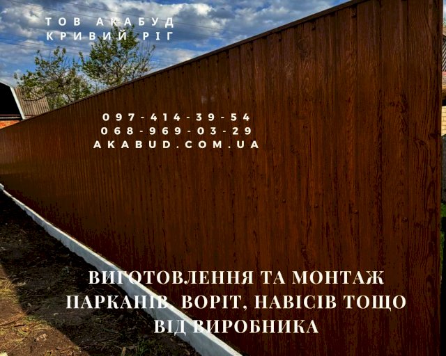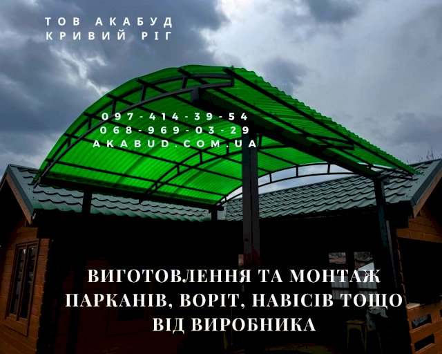 Шукаєте якісні та довговічні рішення для захисту вашої території? Ми – прямі виробники металоконструкцій у Кривому Розі, готові запропонувати вам широкий спектр послуг з виготовлення, доставки та встановлення. Наша компанія працює по всій Україні, гарантуючи високу якість та індивідуальний підхід до кожного клієнта. Наші пропозиції: • Паркани: Ковані: елегантні та міцні, додадуть вашій ділянці неповторний стиль. Зварні: надійні та функціональні, відмінний вибір для практичних рішень. З профліста: сучасний і доступний варіант, що забезпечує приватність та захист. А також: бетонні євроогорожі, паркани-жалюзі, 3D-панелі та комбіновані варіанти. • Навіси: Для автомобілів, терас, зон відпочинку – створимо затишок та комфорт під будь-яким кутом. Різноманітність форм: арочні, односхилі, двосхилі. Матеріали: полікарбонат, метал, ковані елементи. Автонавіси у Кривому Розі – надійний захист вашого автомобіля від негоди. Замовляйте у нас! • Ворота: Розстібні та відкатні (зсувні): зручні та функціональні рішення для вашої зручності. Можливість встановлення хвіртки та автоматики для максимального комфорту. • Хвіртки: З профнастилу, ковані, з 3D-сіткою, жалюзі. Оснащуємо замками, доводчиками, домофонами. • Козирки: Над входом, балконом, хвірткою – стильні та практичні елементи. Різні форми та можливість встановлення освітлення та водостоку. • Балконні огородження: Ковані, зварені, комбіновані – нададуть вашому балкону вишуканість та безпеку. • МАФи: Альтанки, кіоски, павільйони, госпблоки, будки охорони – створюємо функціональні малі архітектурні форми. Чому вибирають нас: • Пряме виробництво: ми контролюємо кожен етап створення, що гарантує високу якість. • Якісні матеріали: використовуємо лише перевірені та надійні матеріали. • Повний цикл послуг: від виміру до встановлення – ми беремо на себе всі турботи. • Гарантія: впевнені у своїй роботі та надаємо гарантію на всі вироби. • Виїзд на замір: наш спеціаліст приїде до вас для точних розрахунків. • Ціна = Якість: ми пропонуємо оптимальне співвідношення ціни та високої якості продукції. Андрій: (068) 969-03-29, (068) 355-19-32 Анастасія: (097) 414-39-54, (098) 741-59-17 Наш сайт: akabud.com.ua