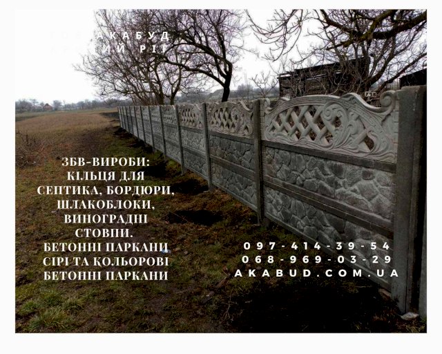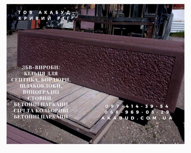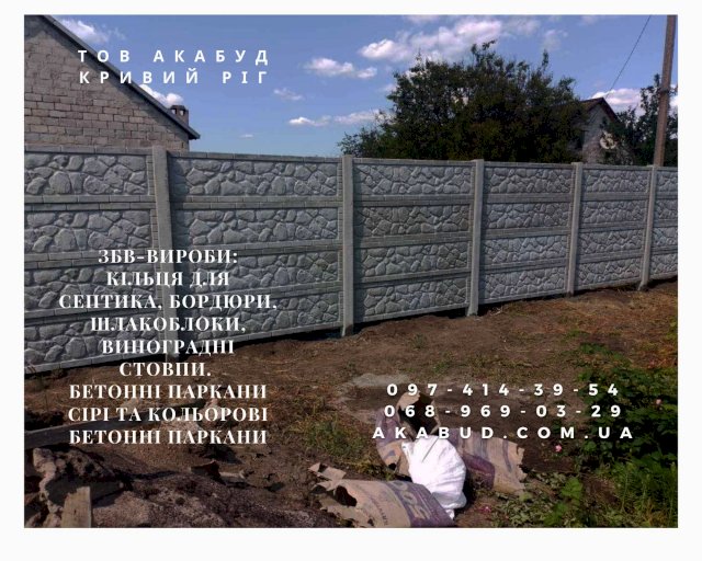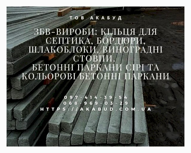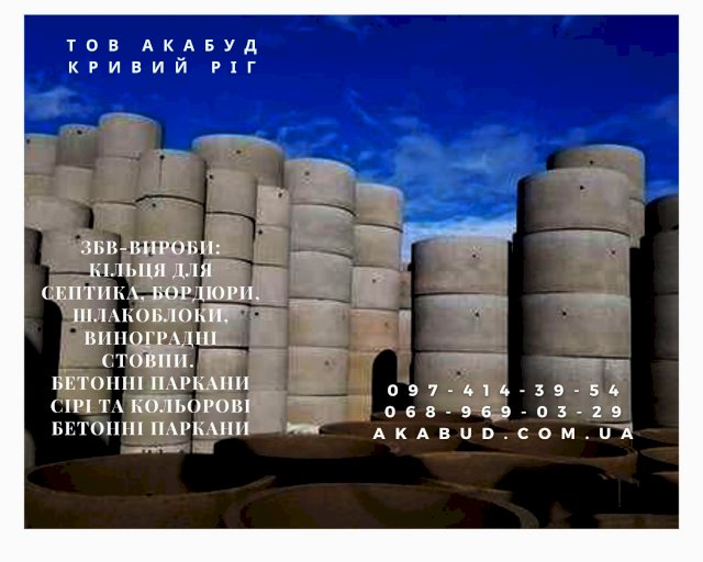 Шукаєте якісні ЗБВ для будівництва чи благоустрою? Ми – ваш надійний партнер! Наша компанія у Кривому Розі пропонує широкий асортимент продукції власного виробництва, гарантуючи високу якість та довговічність. Що ми пропонуємо: • Кільця, днища та кришки для колодязів: Різні типорозміри (КС 10-9, КС 10,9, КС 15-9, КС 20-9) для надійних інженерних систем. • Плити перекриття, кришки ПП та днища ПН: Розміри від 1 до 2 метрів – універсальні рішення для будівництва. • Плитка та бруківка: Сухопресована та вібролита, з різноманітними формами, розмірами та кольорами для створення унікальних ландшафтів. • Європаркани: Глянцеві, кольорові та класичні варіанти (сірі та під мармур), а також стовпчики для них – стильна та практична огорожа. • Щілинні плити: Спеціалізовані рішення для тваринницьких приміщень. Бетонні щілинні підлоги для свиноферм • Дорожні бордюри: Стандартні розміри (1000х300х150 мм) для оформлення доріг і тротуарів. • Стовпчики виноградні: Армовані бетонні стовпчики заввишки 2,2 м, 2,4 м та 2,7 м для виноградників та інших конструкцій. Чому вибирають нас: • Власне виробництво: Ми контролюємо кожний етап виготовлення, забезпечуючи високу якість. • Наявність на складі: Великий запас продукції дозволяє здійснювати швидку доставку. • Доставка маніпулятором: Власний транспорт гарантує оперативну та акуратну доставку прямо на ваш об'єкт. • Гарантія якості: Ми впевнені у своїй продукції та надаємо гарантію. • Працюємо по всій Україні: Доставимо ваше замовлення до будь-якої точки країни. (097) 414-39-54, (098) 741-59-17 – Анастасія Завітайте на наш сайт: akabud.com.ua