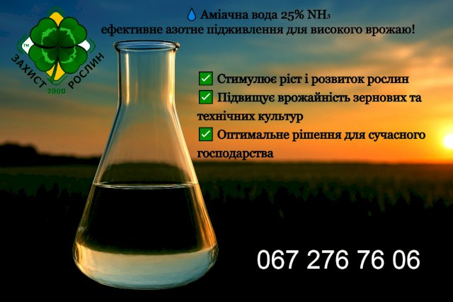 ???? Аміачна вода — джерело азоту, що пробуджує ґрунт до життя! ???? Коли рослини отримують достатньо азоту — поле «дихає», листя зеленіє, коренева система міцнішає, а врожайність росте у рази! ???? ???? Аміачна вода (NH?OH) — це ефективне рідке азотне добриво, яке: ? Швидко засвоюється рослинами — азот у доступній формі; ? Покращує родючість ґрунту та активізує мікрофлору; ? Підходить для всіх культур — зернових, технічних, кормових; ? Забезпечує економію на добривах — бо діє довше, ніж інші форми азоту; ? Безпечна для навколишнього середовища, якщо вноситься правильно. ???? Чому важливо не допустити нестачі азоту? Без аміачної води рослини слабшають, зупиняється ріст, листя блідне, колос формується погано. У результаті — втрати врожаю до 30%! ???? Тому не чекайте, поки поле «заговорить мовою дефіциту» — дайте йому живлення зараз! Наш продукт має стабільний вміст 25% аміаку, високу якість та очищення. ???? Прямі поставки від виробника. Гарантована якість і вигідна ціна! ???? 067 276 76 06 - звертайтесь просто зараз — допоможемо підібрати оптимальну норму внесення під вашу культуру!